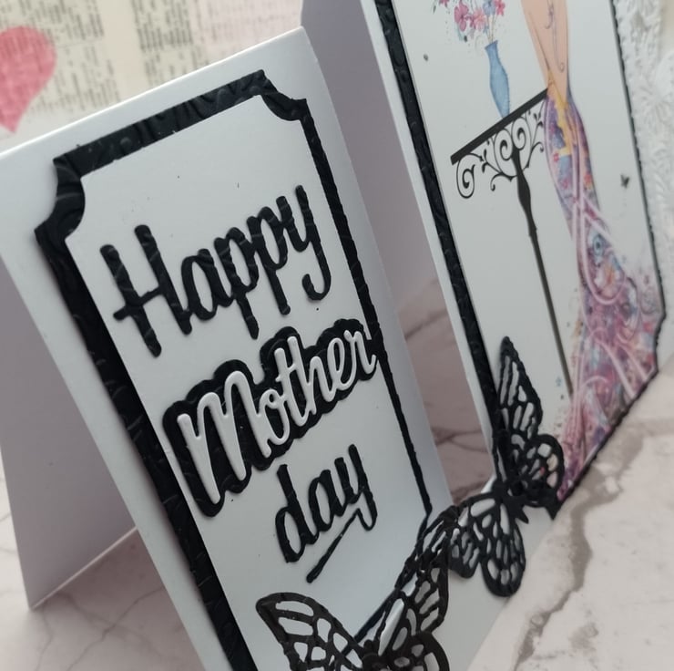 Unique design, your card stand with dimension but folds flat for posting and has modern stylish image.