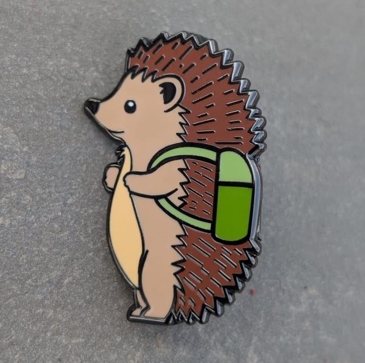 Snuggle up with a slice of British countryside charm! This hand-designed hedgehog enamel pin captures the adorable spikey friend we all know and love, perfect for wildlife lovers, nature walkers and enamel pin collectors.