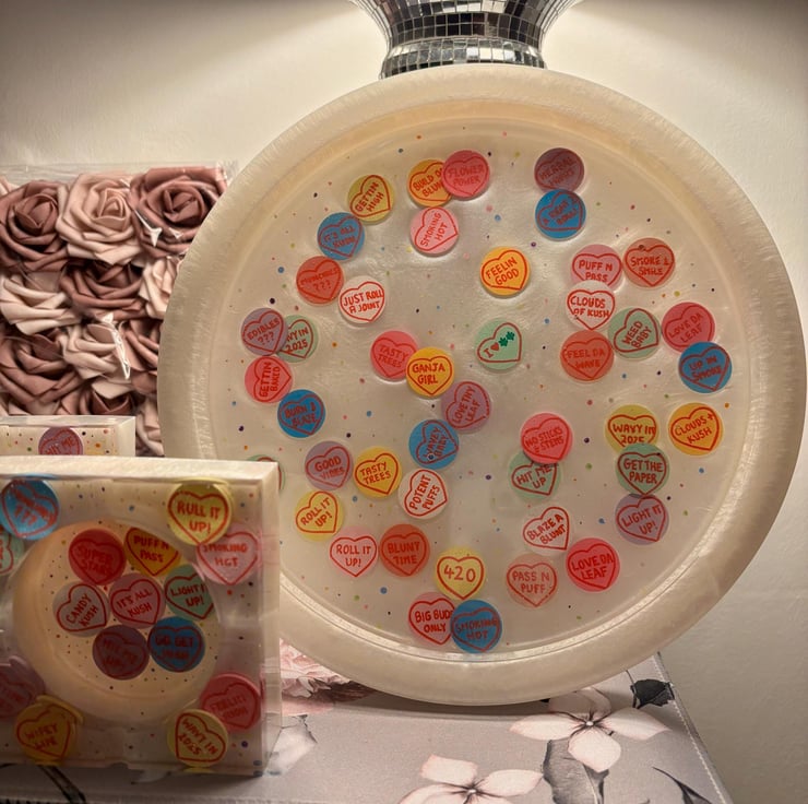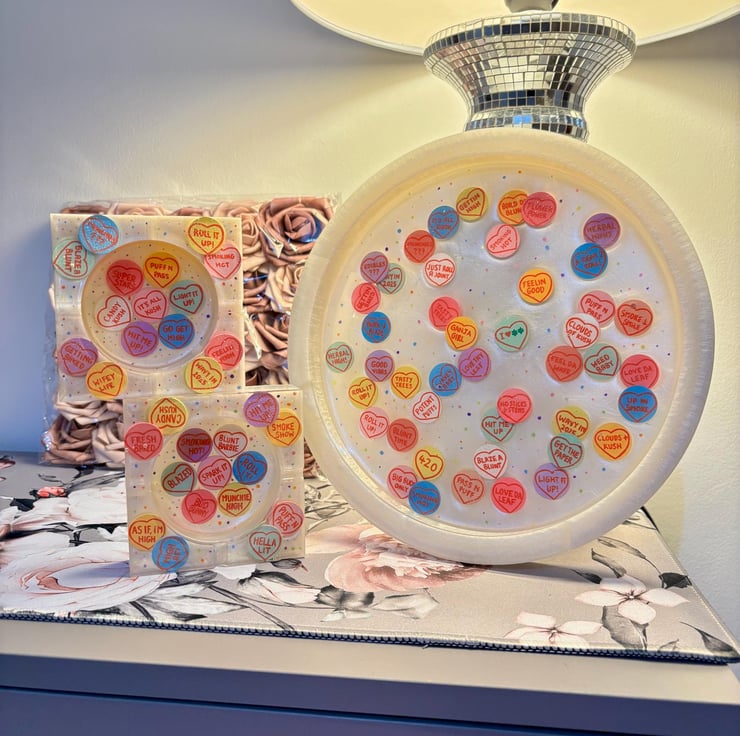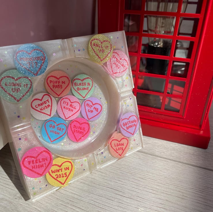 Love Hearts Custom Resin Ashtray, Rolling Tray Gift Set