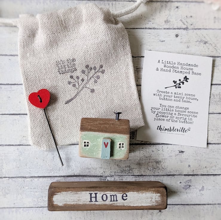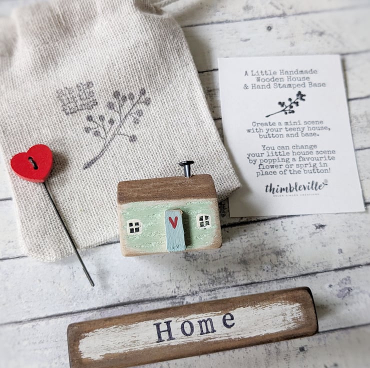 A sweet teeny wooden house and button scene that you can choose to personalise with your own decoration!