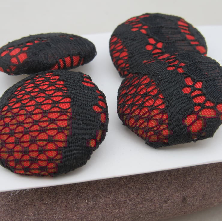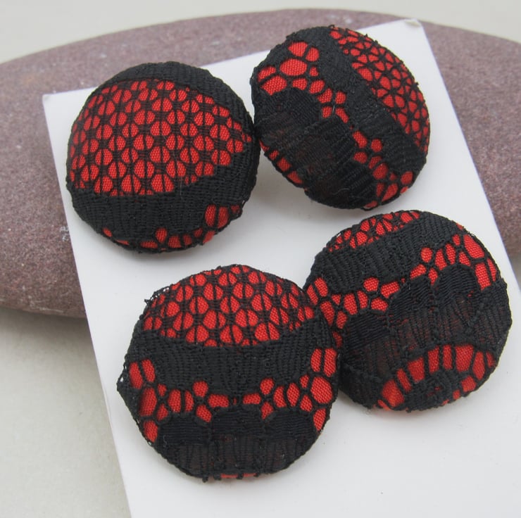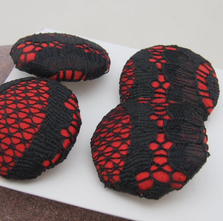 Set of 4 handmade fabric buttons, 3.1 cms diameter on a white nylon base and shank.