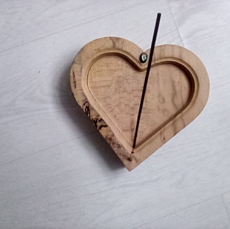 Hand made spalted beech incense stick holder with protection stone made from one solid piece a beautiful valentines gift or just a gift of love 20cm x 18cm x 3cm thick