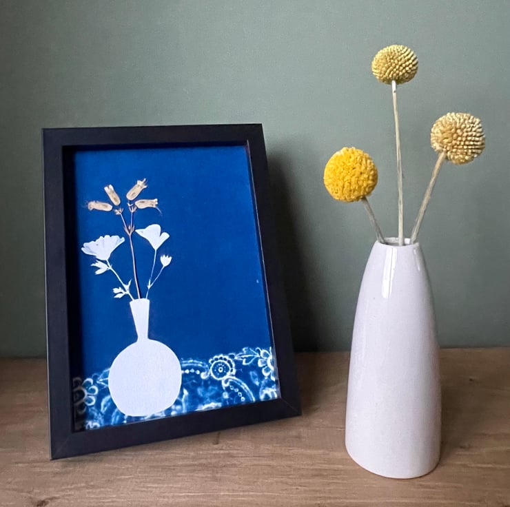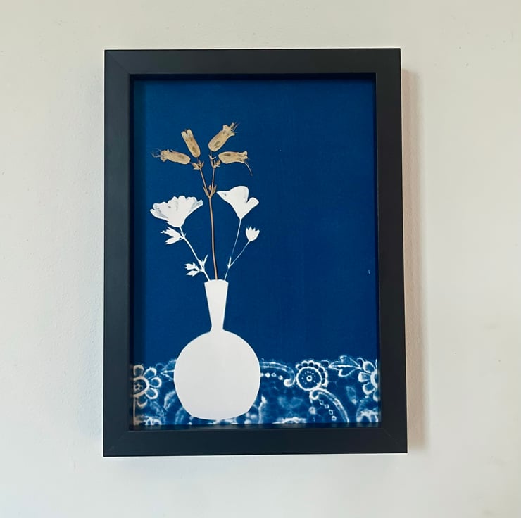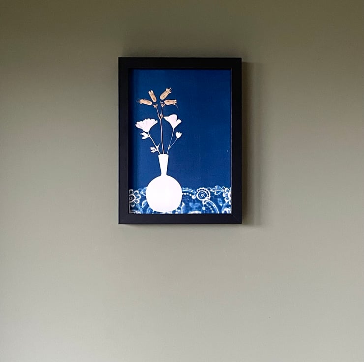 Printed on 300gsm Snowdon paper, this 5” x 7” cyanotype can be purchased with or without a frame.