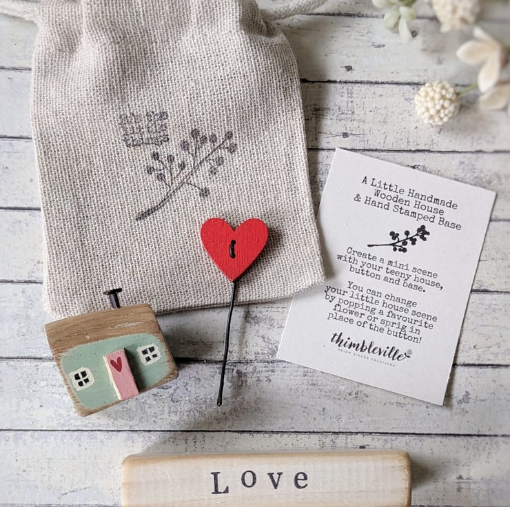 A sweet teeny wooden house and button scene that you can choose to personalise with your own decoration!
