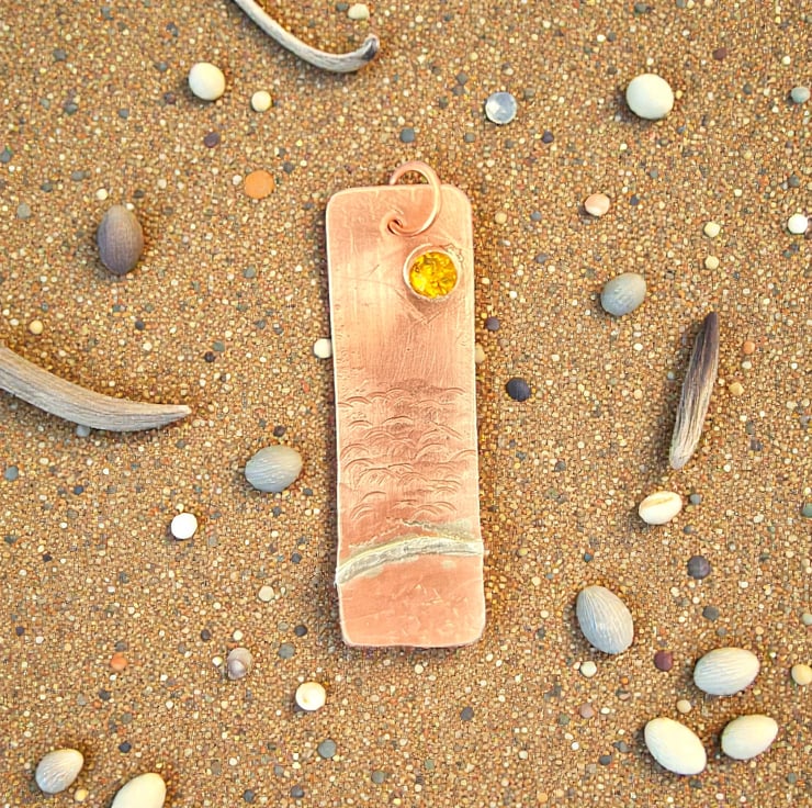 Copper and Sterling Silver Crystal Seaside Beach Pendant