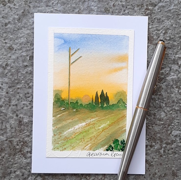 The card is 4 x 6 inches, signed by the artist and with my embossed maker's stamp in the bottom left corner. It is protected with two layers of satin varnish and supplied with a white envelope.