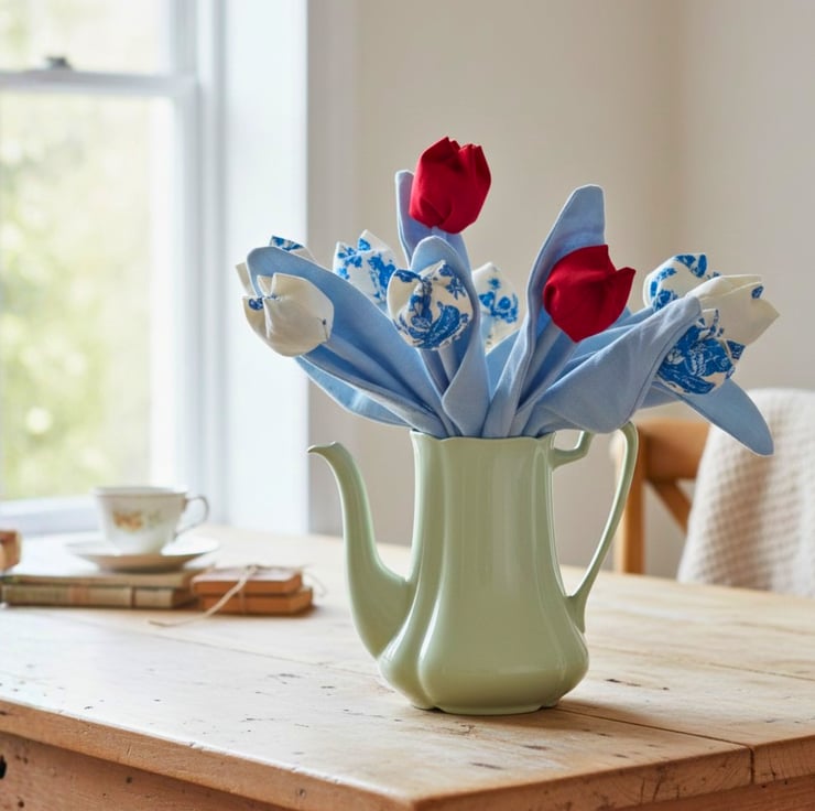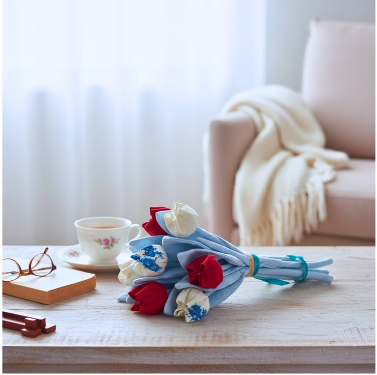 Tulips have always been one of my favourite flowers—their colours, their shape, their quiet elegance. I wanted to create fabric tulips that last, but also offer something more than decoration.