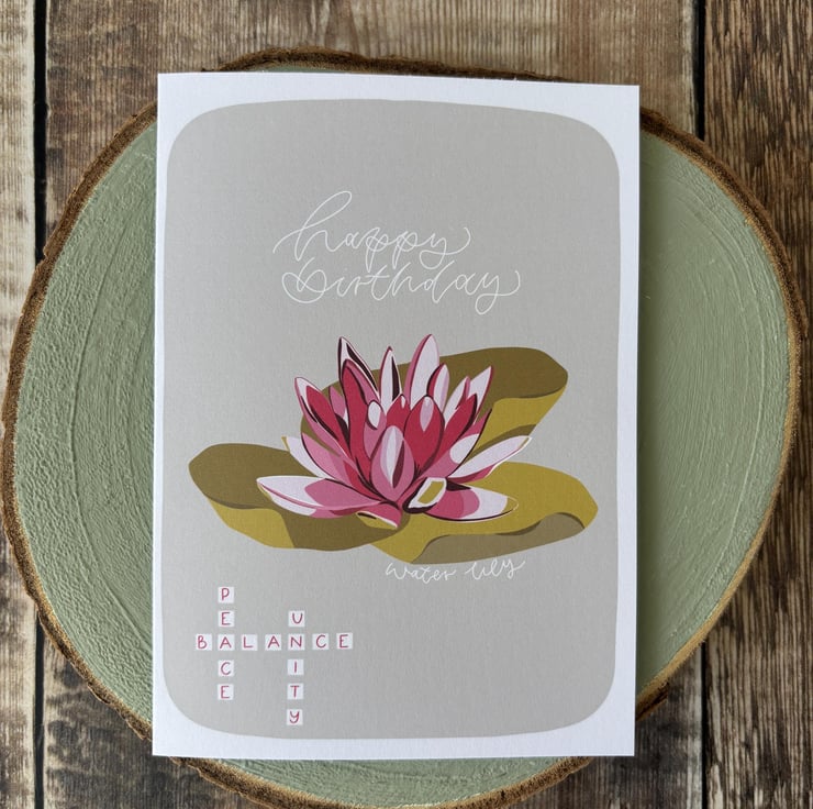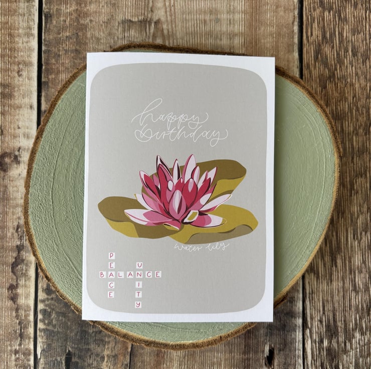 GREETING CARD: Water Lily, Birthday Card, July Birth Flower
