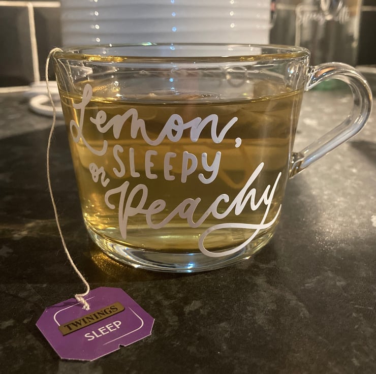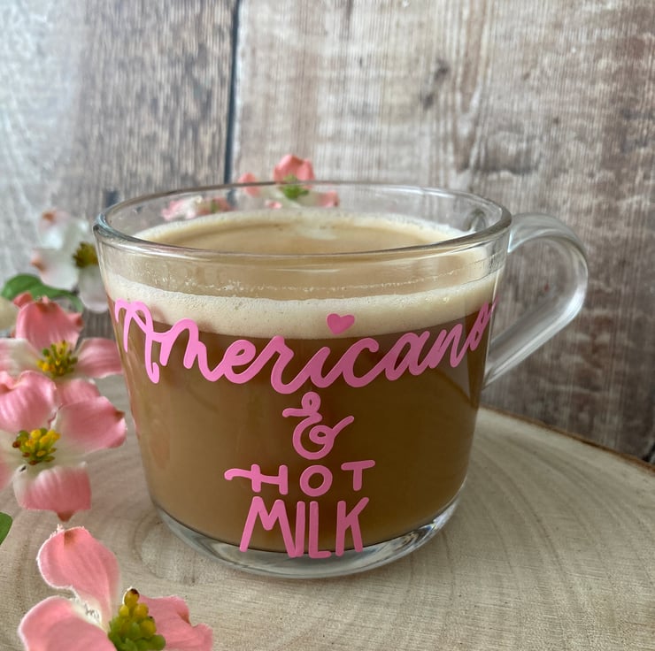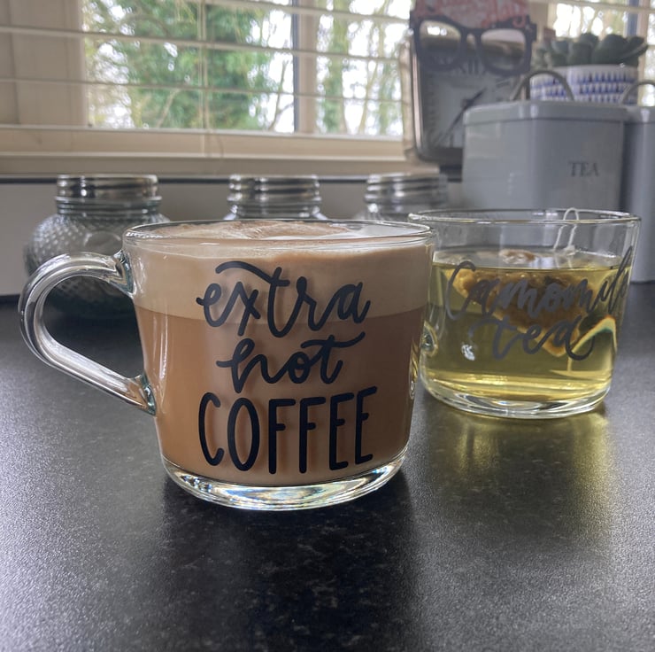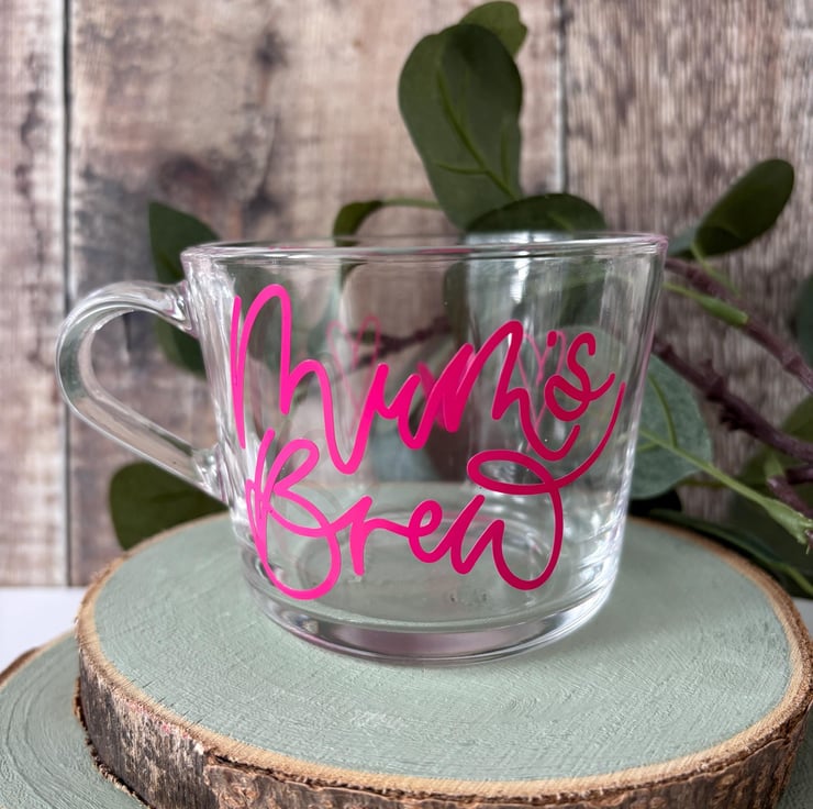 PRODUCT: Glass Mugs personalised with your choice of phrase on one side of the mug.