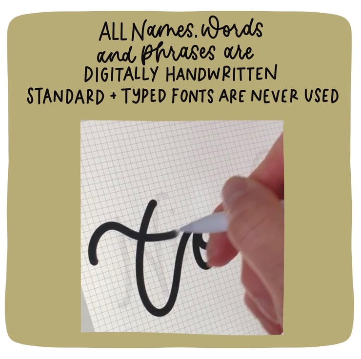 All calligraphy is my own, no standard fonts are used, therefore each word written is unique to me.