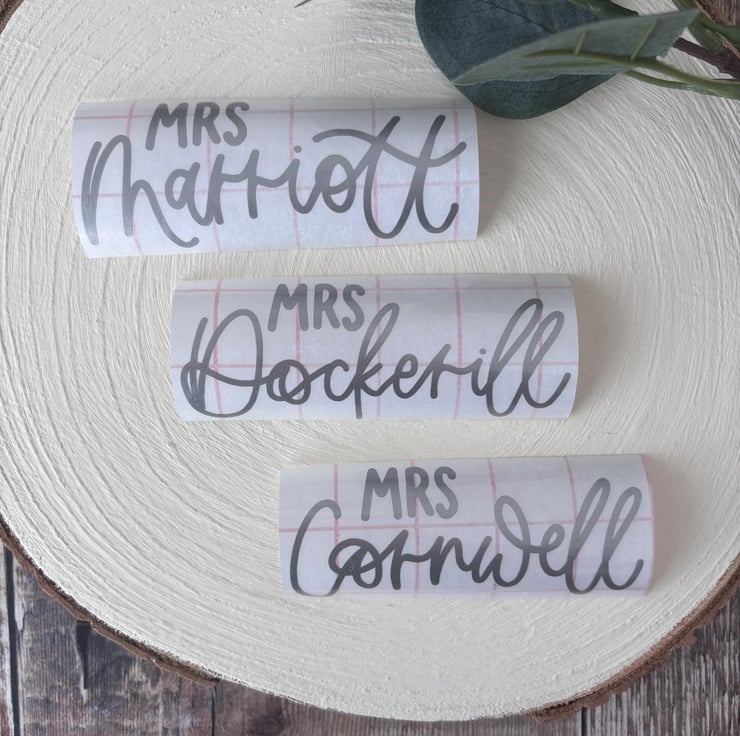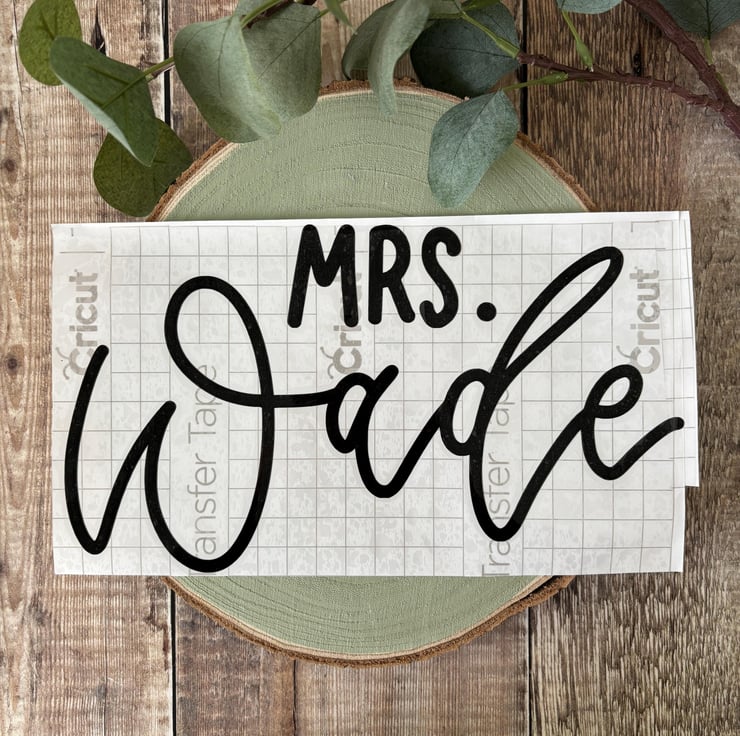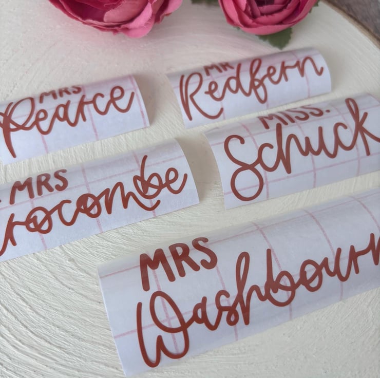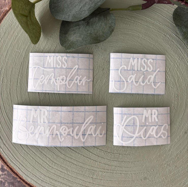 You will then place your name on your desired product, press down and peel off the clear tape.