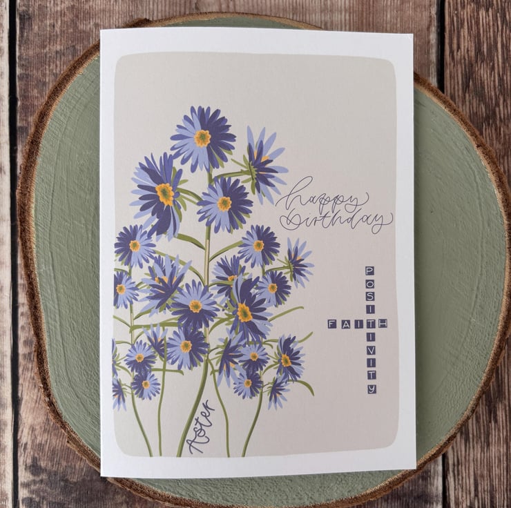 GREETING CARD: Aster, Birthday Card, September Birth Flower