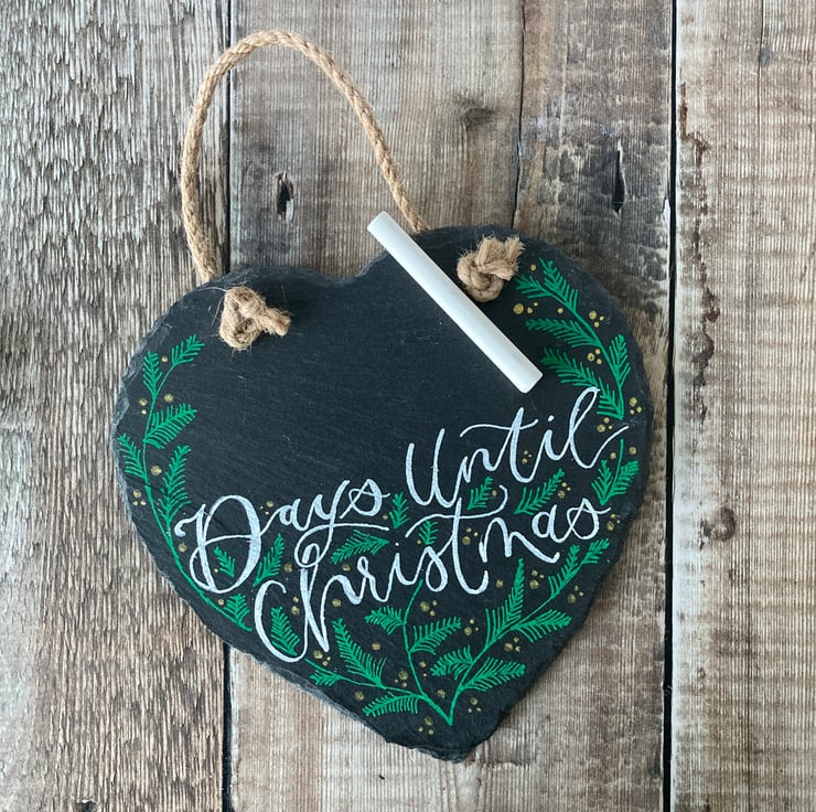 Personalised Slate Christmas Decoration: Heart Sign, Days Until Christmas