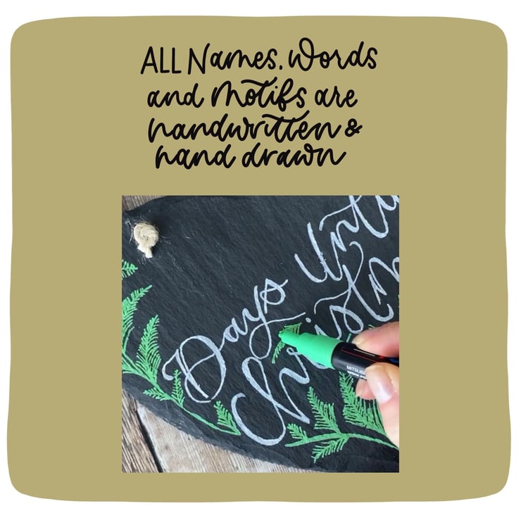 CALLIGRAPHY: All calligraphy is my own. Therefore, each word is unique to me. Styles and sizes may vary to those shown in the photos.