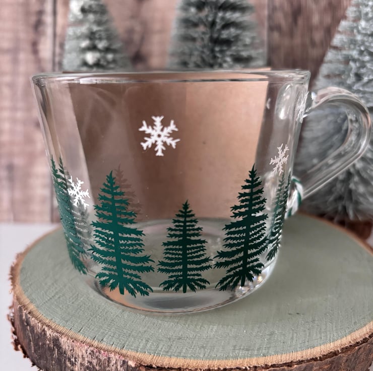 MERRY CHRISTMAS Glass Mug with pine trees
