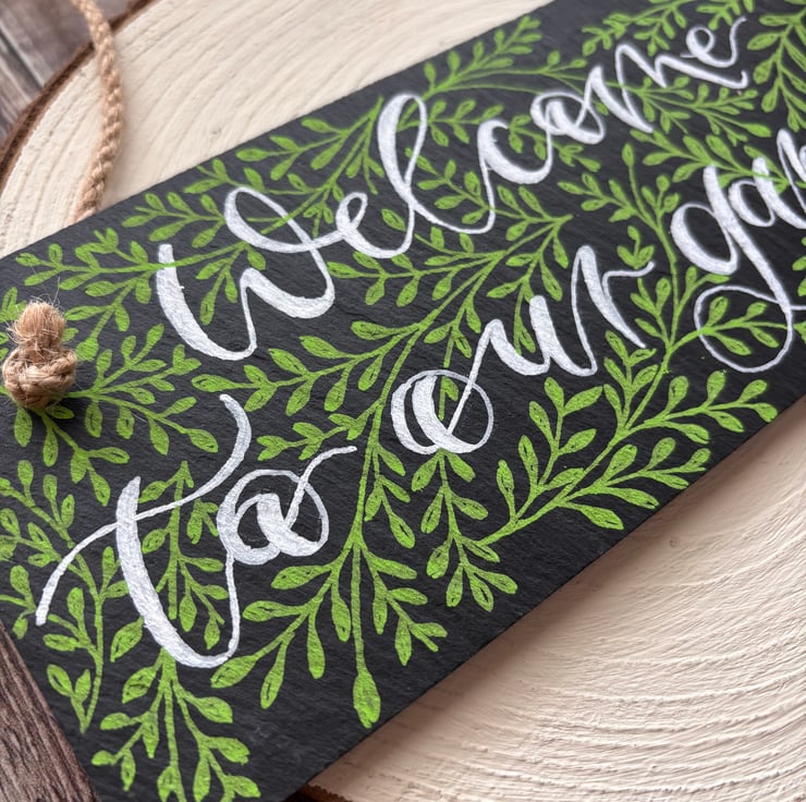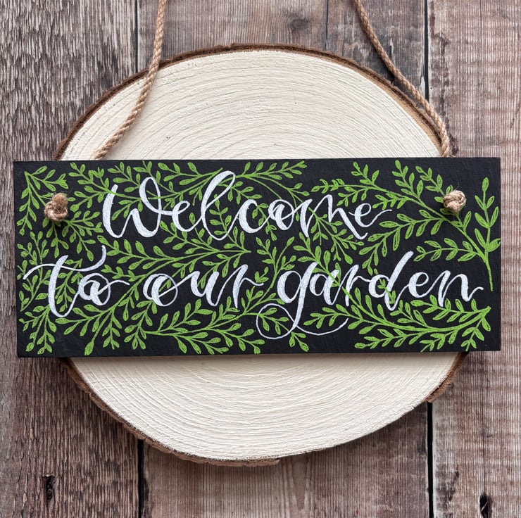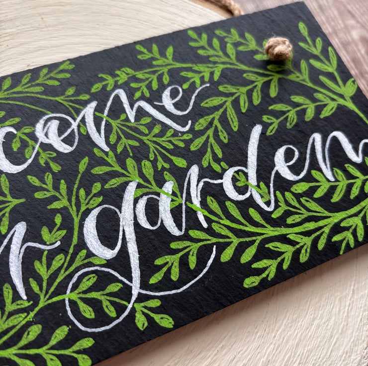 PRODUCT: Garden Slate Decorations - hand written in modern calligraphy.