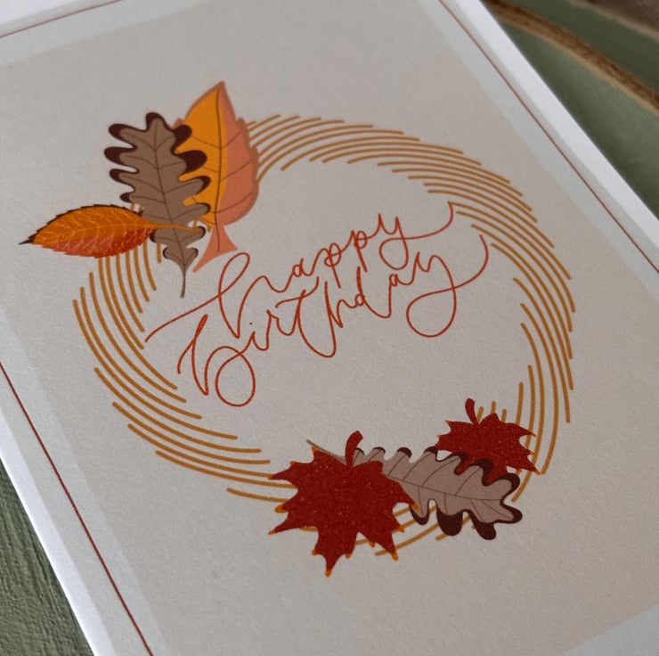 Autumnal Wreath Happy Birthday Card: Hand-Drawn Illustration