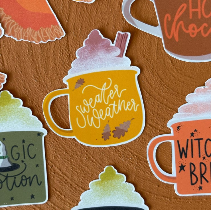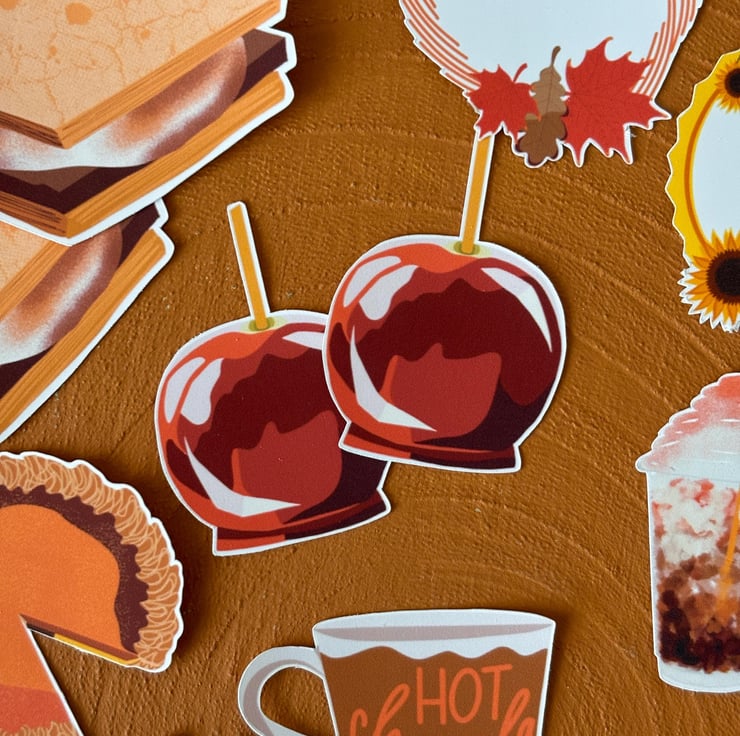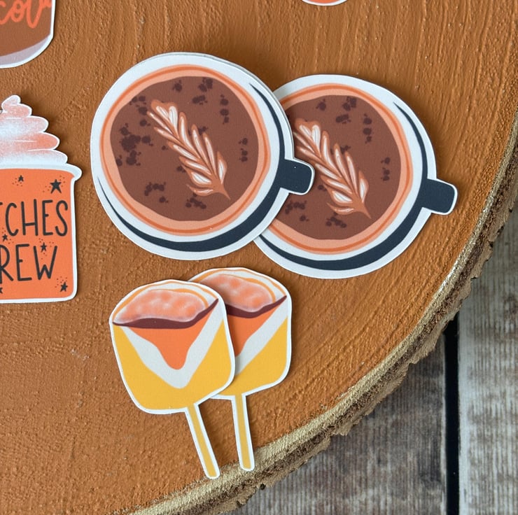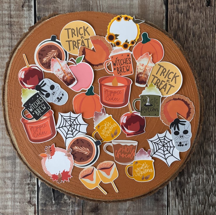 Original digital hand drawn cosy images inspired by Autumn & Halloween made into stickers