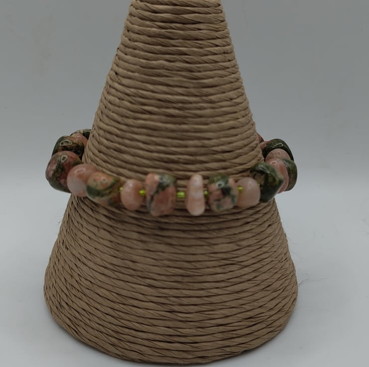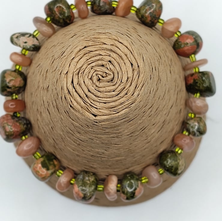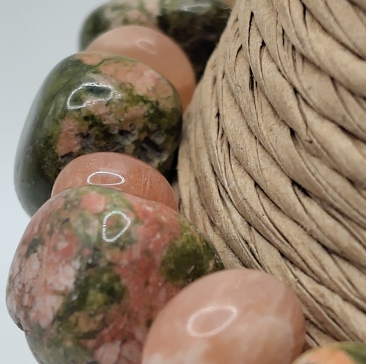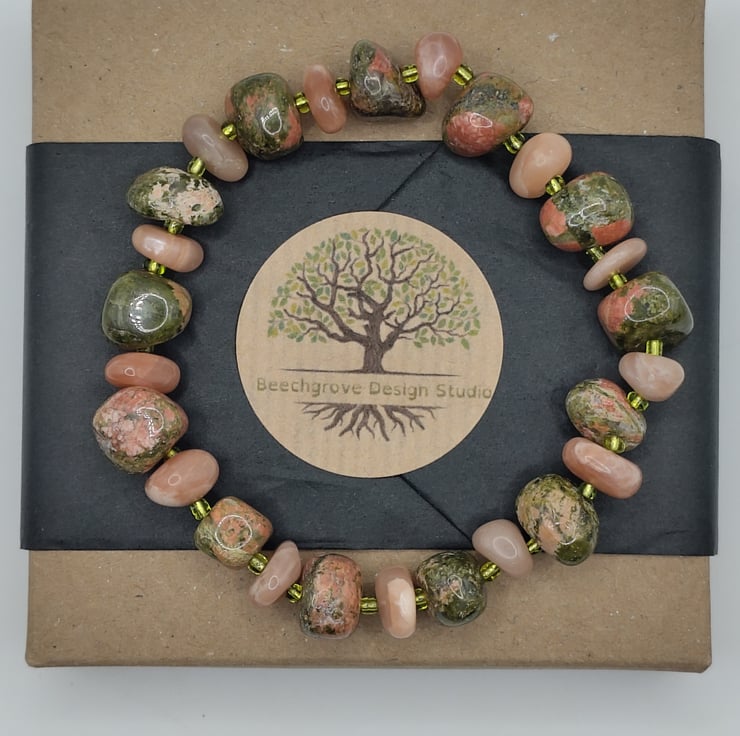 B suite. A Handcrafted Unakite and Peach Moonstone Stone Bracelet from the ‘70’ series by BDS.