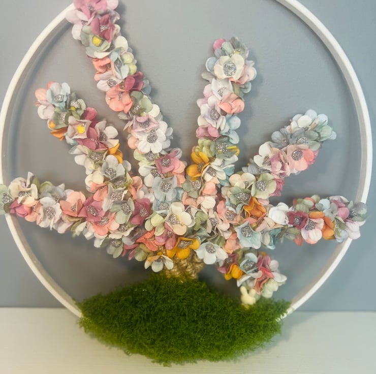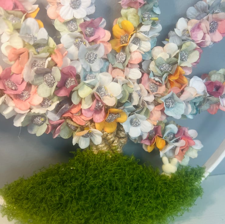 This one-of-a-kind floral tree has been carefully handmade using over 300 individually placed flowers, each wire-wrapped by hand to create flowing branches full of soft colour and texture.