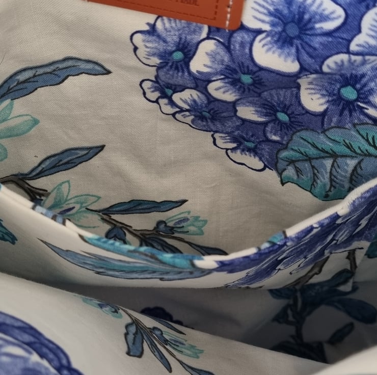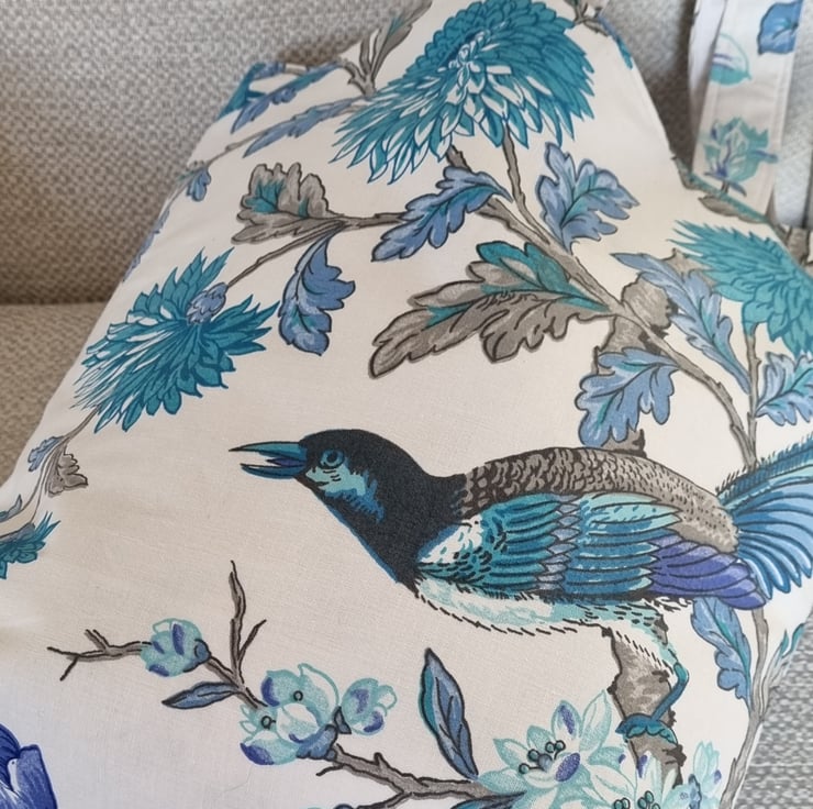 A bag that had a past life - it was once a curtain! Stitched, slowly and thoughtfully from upcycled vintage curtain fabric. It has given new life to beautiful material, truly one of a kind.