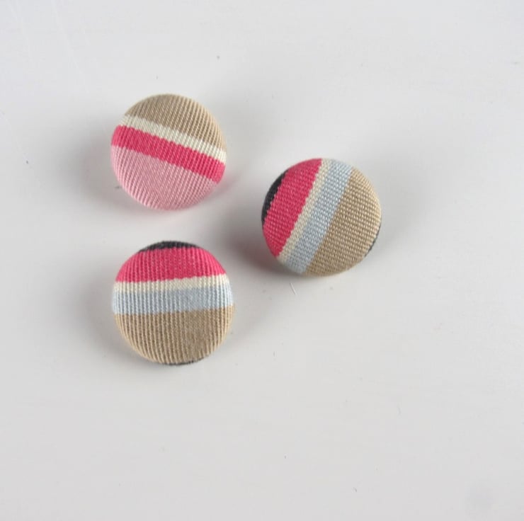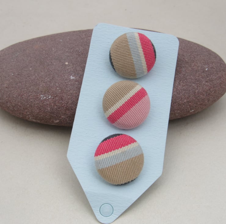 Set of3 handmade fabric buttons, 2.4cms diameter on a white nylon base and shank.