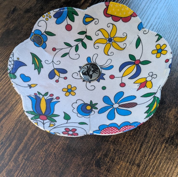 Handmade Folk Textile Bowl – Water-Resistant White Fabric Trinket Dish