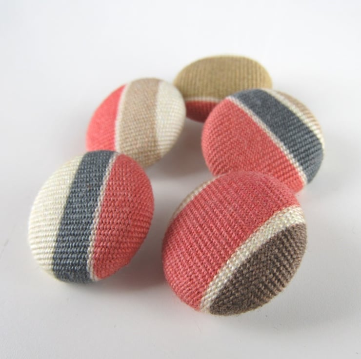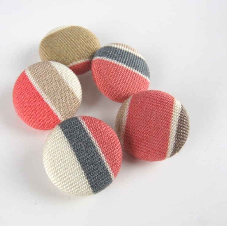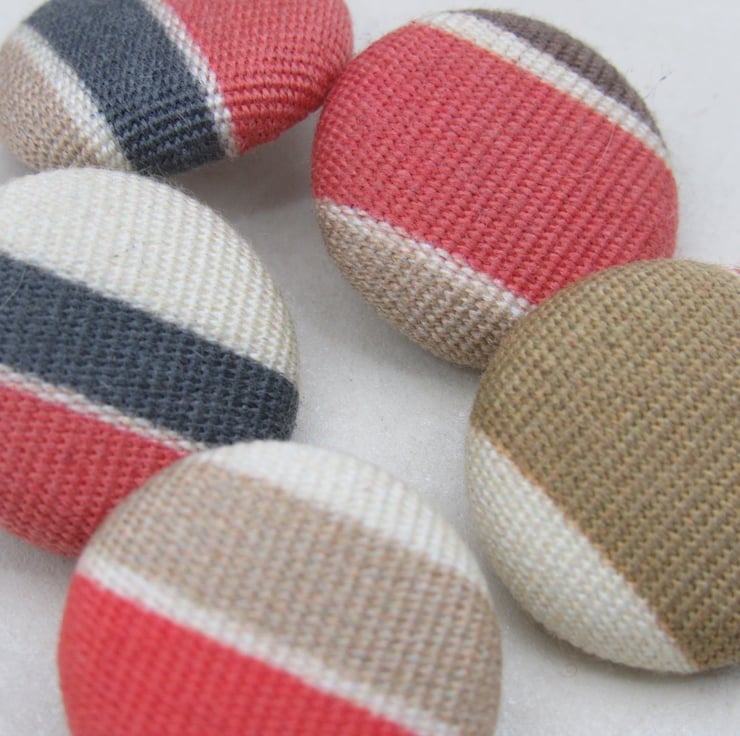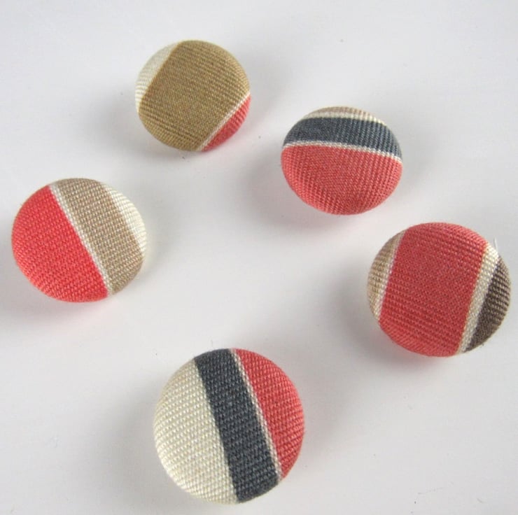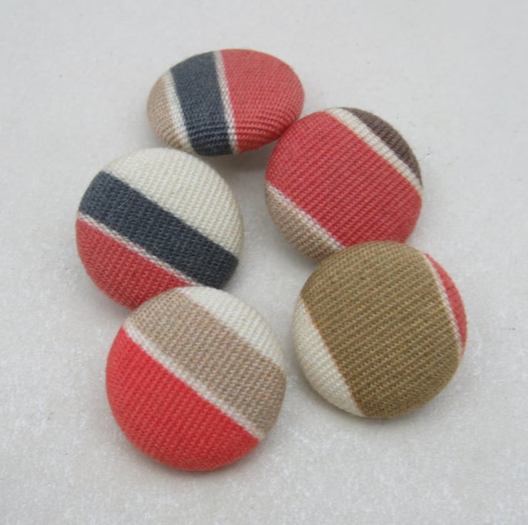 Set of 5handmade fabric buttons, 2.4cms diameter on a white nylon base and shank.