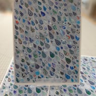 The original collage depicts of flock of Starlings murmurating, as they do, against a watercolour painted sky. Each bird was cut out individually from card and placed against the watercolour sky.