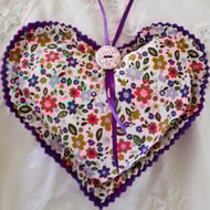 Lovely hand sewn daffodil hanging heart made with cotton material on the front and yellow felt on the back, contrasting yellow ribbon and yellow buttons to hang the heart anywhere in your home, filled with soft polyester hollow fibre toy stuffing. Ideal to give as a gift.