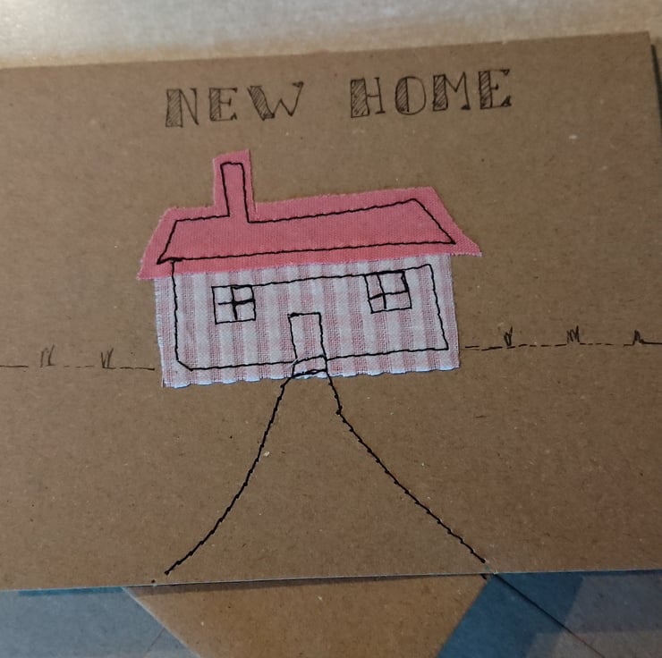 Recycled card and envelope, Fabric stitched design
