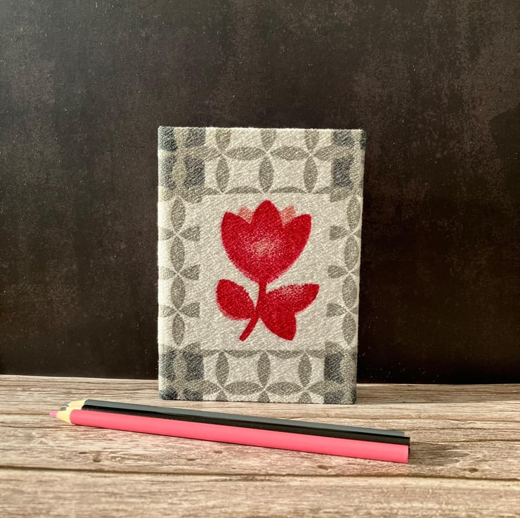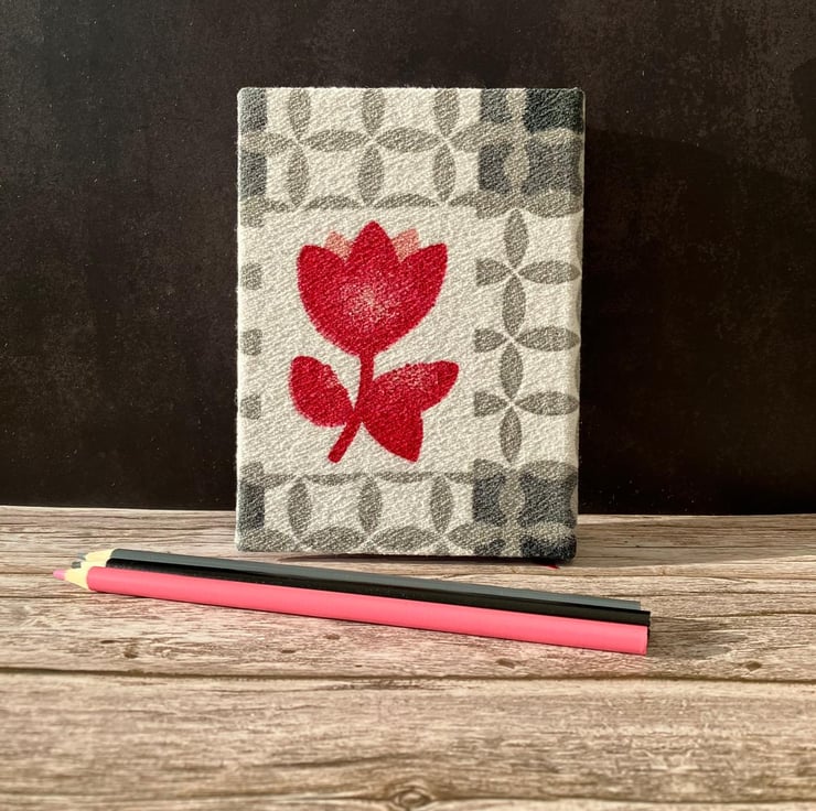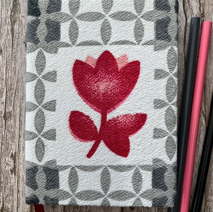 Handbound A6 'Spring Tulips' 1950's Vintage Barkcloth Fabric Sketchbook Journal