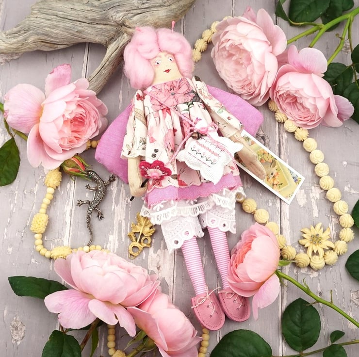 Please enjoy browsing and should you buy a doll she will be packaged in an organza bag. I have been given literally hundreds and will use them until they run out rather than let them go to landfill. Also I have been asked why I don't often repeat combinations of fabric with the dolls. It is because I tend to buy remnant stock where I can, tiny pieces of fabric that are too small for most people to use. So often I have only enough to make one doll. Thank you and my warmest wishes xx