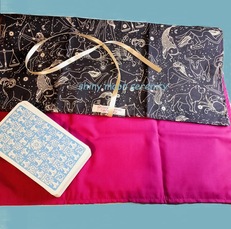 Found the fabric and thought it was a good match to make a tarot/oracle mat-wrap.