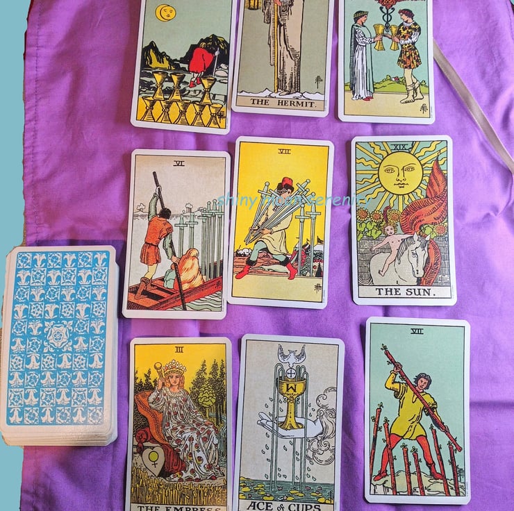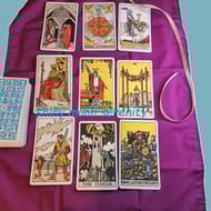 The tarot cards are used for display only. This is a Rider Waite Tarot Deck, standard size (H 12 cm x W 7 cm/H 4.75 x W 2.75) approx.