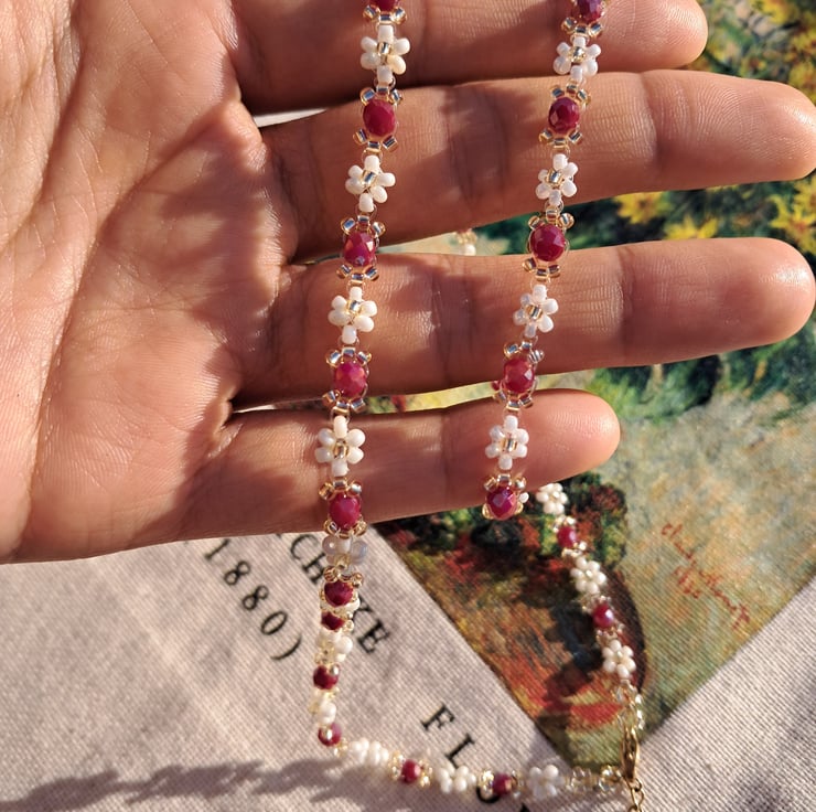 Ruby Blossom Necklace & Bracelet Set – Handcrafted Floral Beaded Jewellery