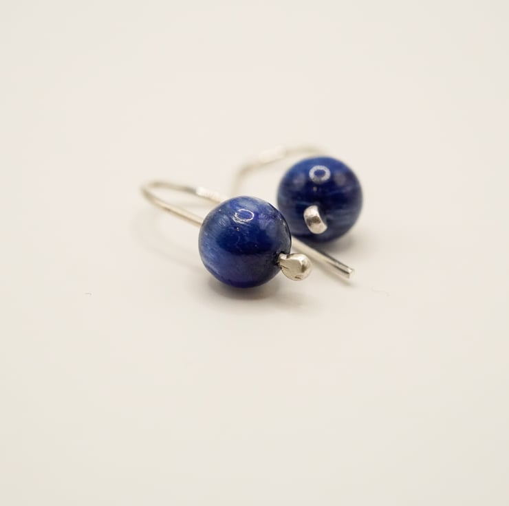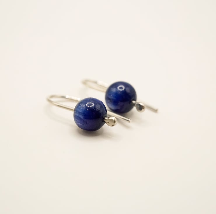 Kyanite silver earring, handmade using traditional metal smithing techniques.