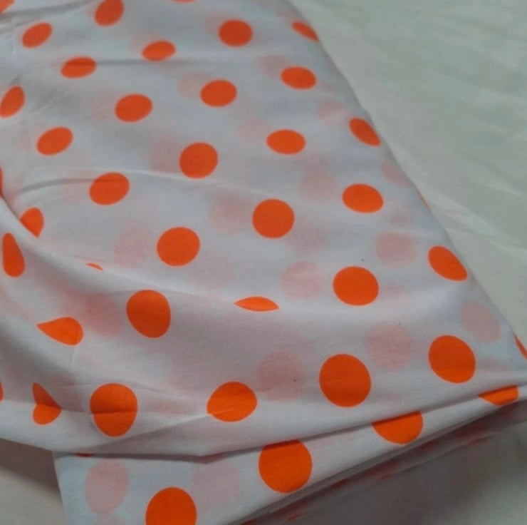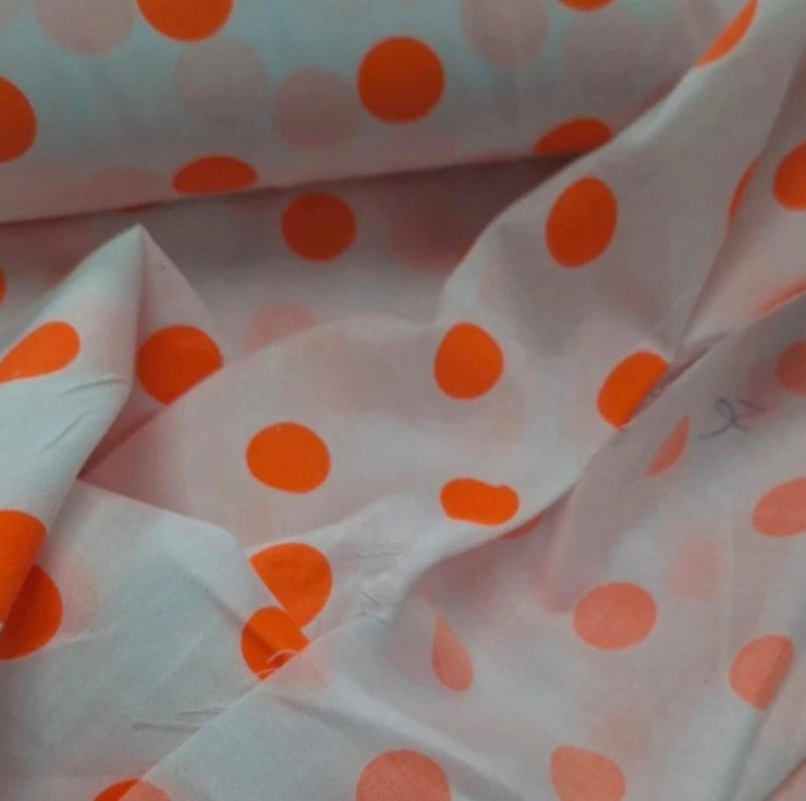 1 Metre 2 cm Orange Polka Dots Lightweight Poycotton Fabric 1.12m Wide