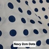 Lightweight fabric featuring large polka dots measuring approx 1 inch (2 cm) on a pure white background. A bold, classic spot design suitable for a wide range of sewing and craft projects.