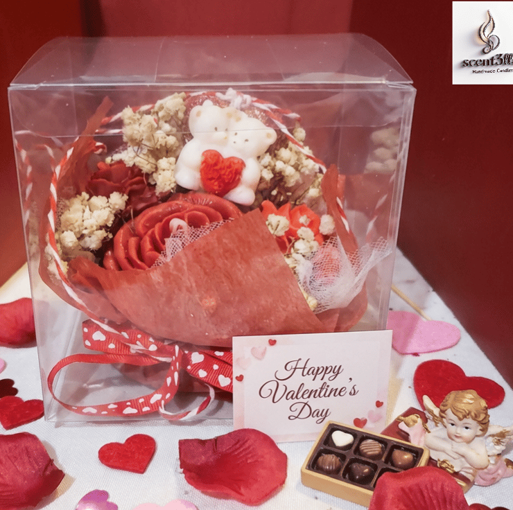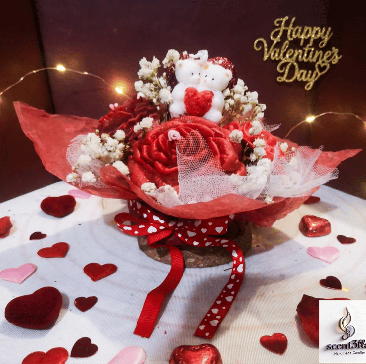 Romantic "Cuddle Bears" & Rose Candle Arrangement – Unique Valentine’s Day Gift
