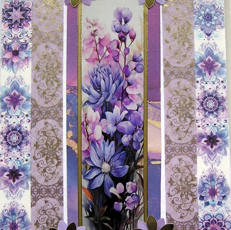 Purple Summer Flowers - Hand Crafted Decoupage Greeting Card - Blank 3073