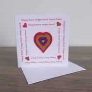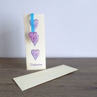 I enjoy making textile cards as it lends itself to the small scale work that I especially like doing and I often use hearts in my designs.