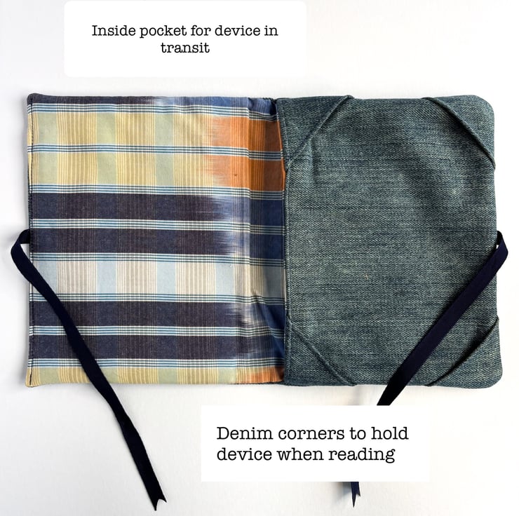 There is a pocket to keep your device in when not in use and reinforced fabric corners to hold your device when you’re enjoying your favourite book.
