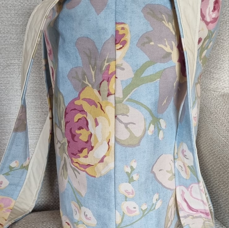 A bag that had a past life - it was once a curtain! Stitched, slowly and thoughtfully from upcycled vintage curtain fabric. It has given new life to beautiful material, truly one of a kind.
