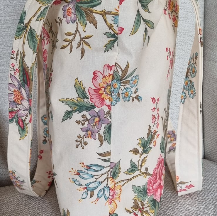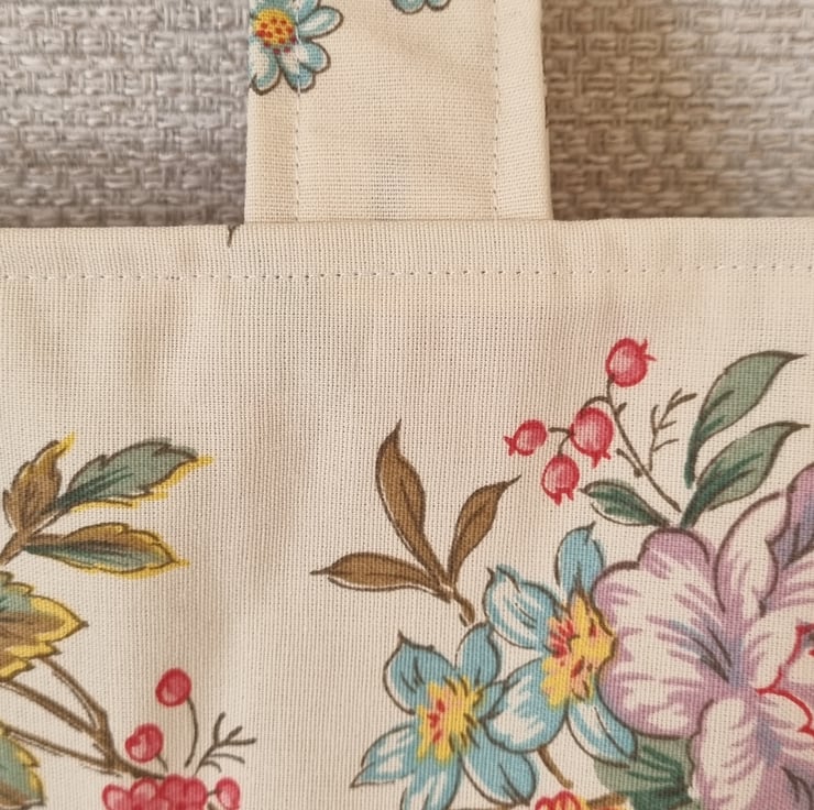 A bag that had a past life - it was once a curtain! Stitched, slowly and thoughtfully from upcycled vintage curtain fabric. It has given new life to beautiful material, truly one of a kind.