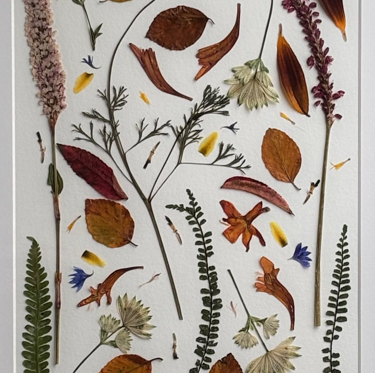 "Dartmoor summer No.1" is a pressed flower creation from the heart of Dartmoor. All flowers, leaves and seeds grown and collected in my garden and slowly pressed in my studio. From field to finish can take around 6 months.
