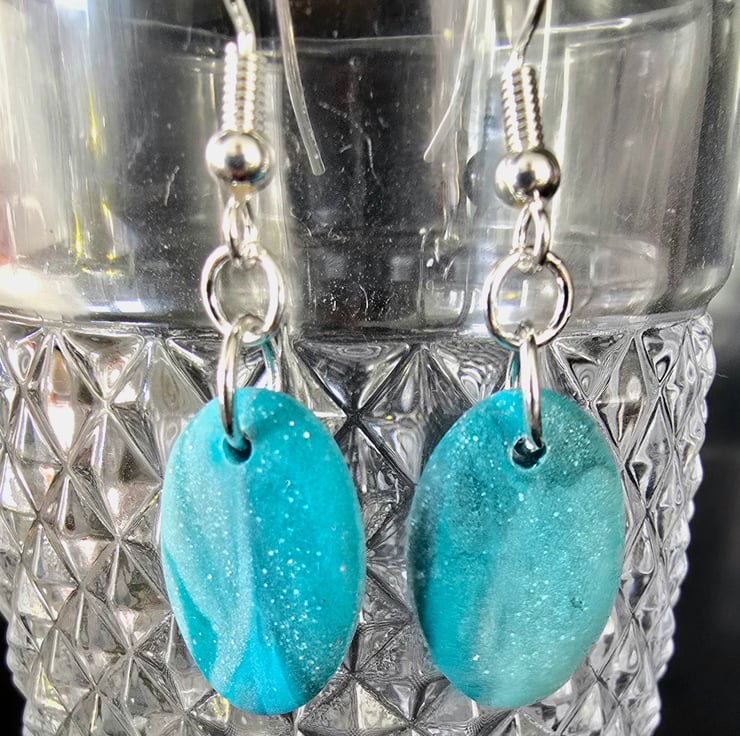 A pair of oval earrings lovingly made with polymer clay. All earrings come on silver plated ear hooks and are presented in tissue and in an organza bag ready to gift to yourself or someone else.