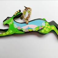 A lovely ceramic heart shape hand painted with a picture of a brown hare leaping in a moonlit landscape it is ready to hang, bringing the countryside to your home, a one off original design