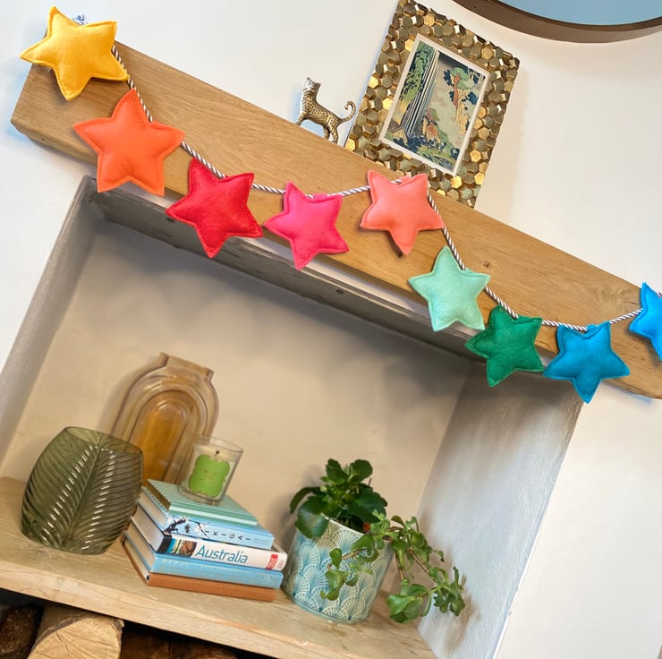 Individually strung on a chunky cotton cord, our stars are moveable along the length to achieve your desired placement.