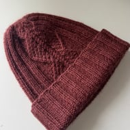 This hat is knitted from Drops Lima, color red. Composition: 65% Wool, 35% Alpaca.Fits a head circumference of 56 cm.